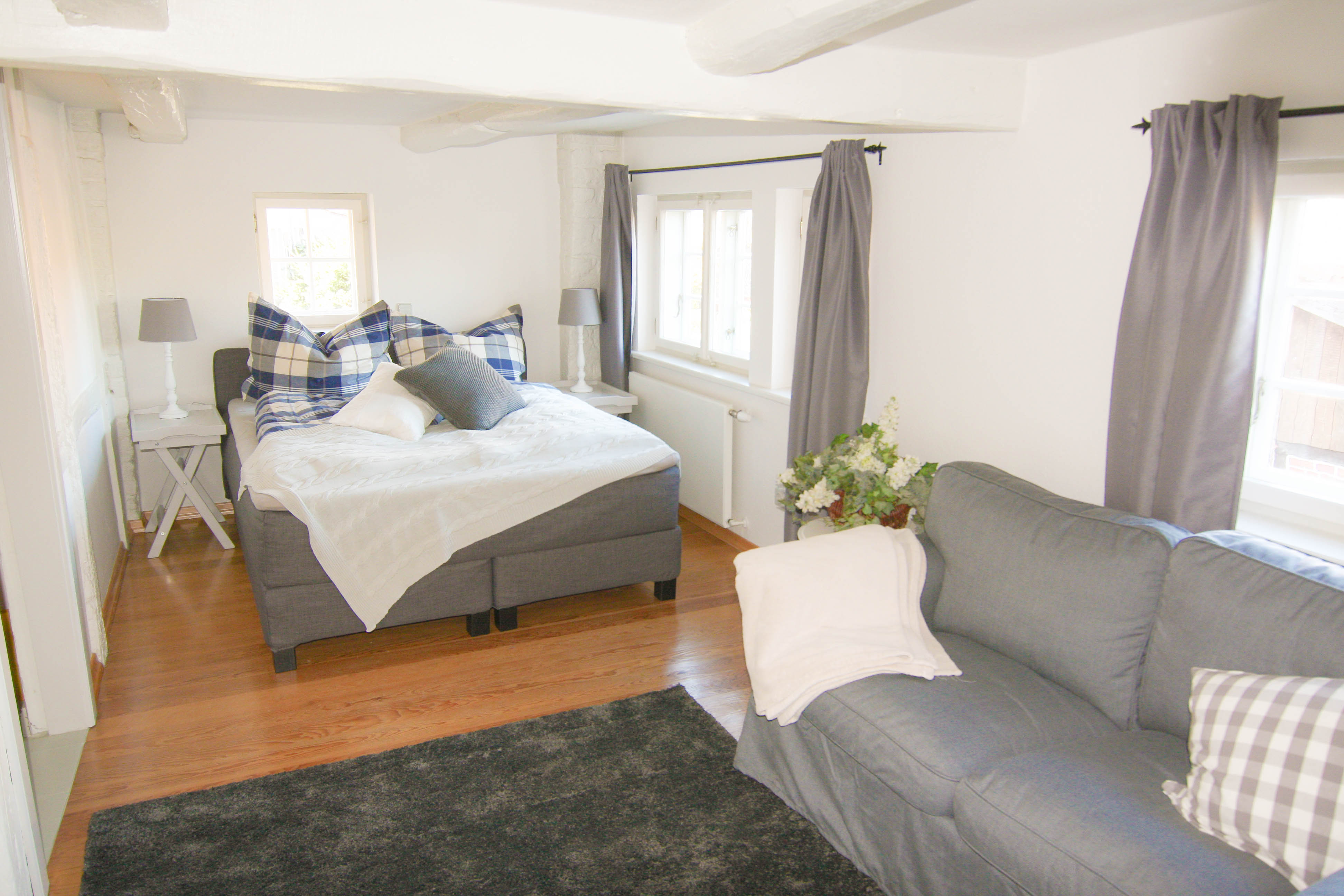 Unser Familiendomizil mit zwei Schlafzimmern, Wohnbereich, Esszimmer und Kamin.